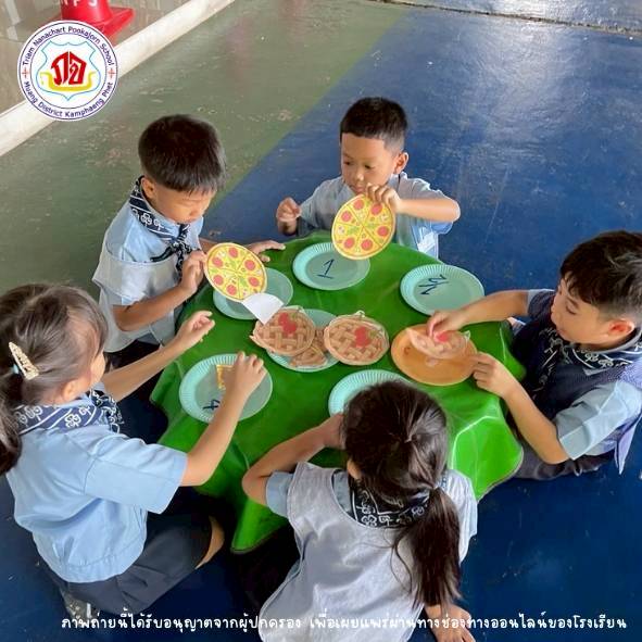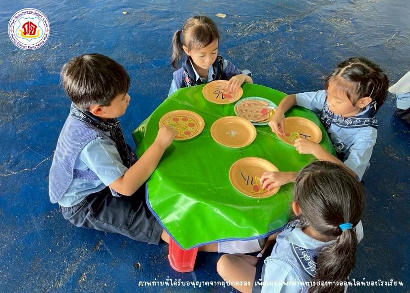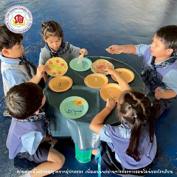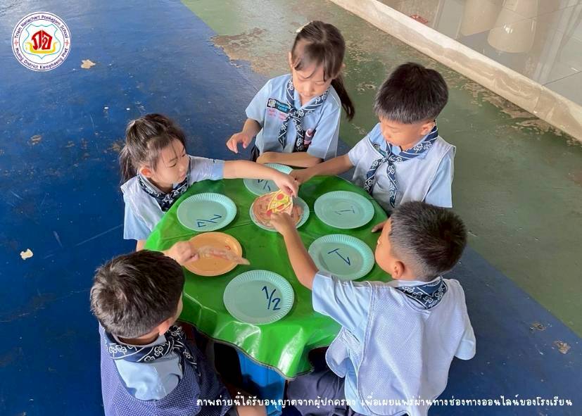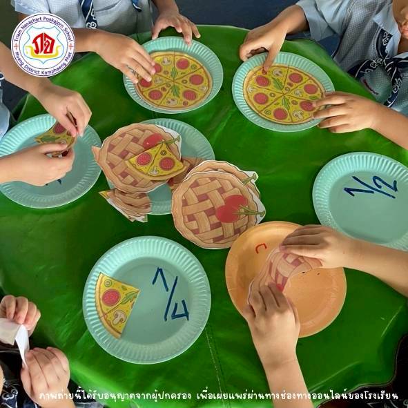 นักเรียนสามารถอ่านเศษส่วนและบอกค่าที่เท่ากัน โดยการติดพายครึ่งหรือพิซซ่าหนึ่งในสี่ กิจกรรมนี้ช่วยให้นักเรียนเข้าใจเศษส่วนและจำนวนเต็มมากยิ่งขึ้น